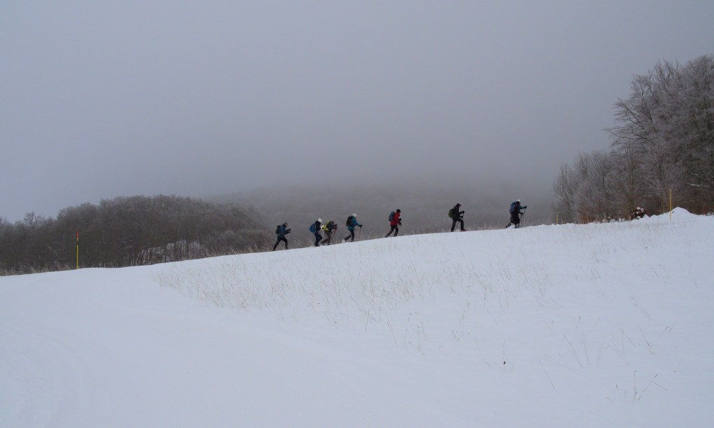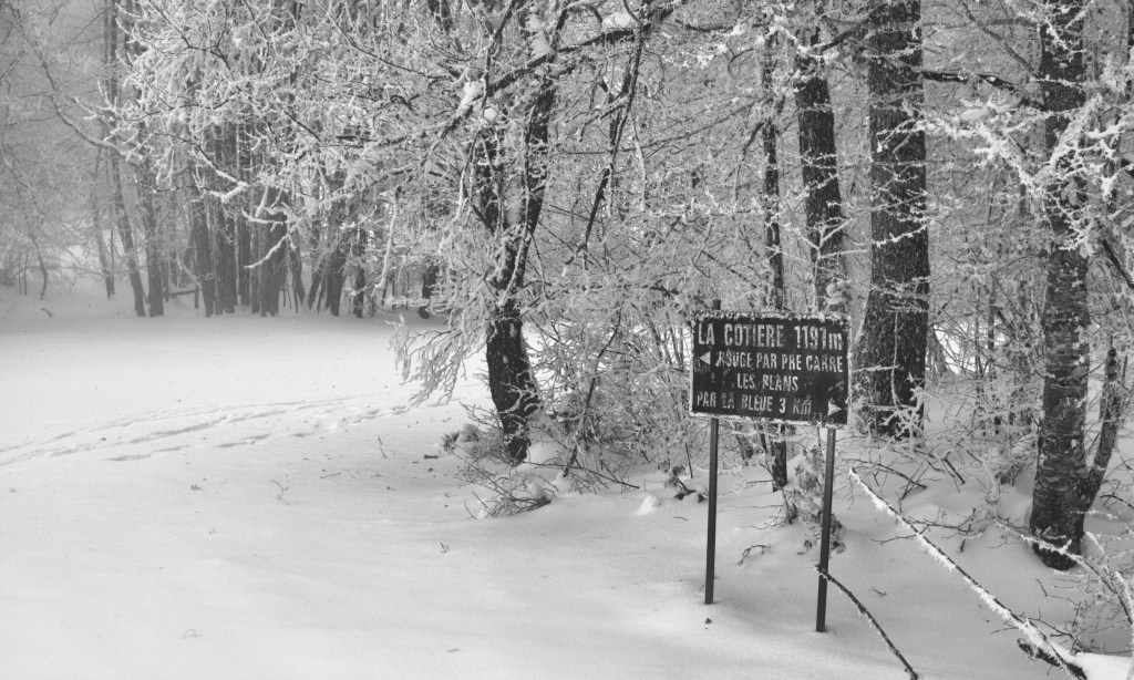 Randonnée en raquettes de 13 kilomètres près du plateau de Retord, sur la commune de HAUT VALROMEY. Un temps gris et froid mais des paysages superbes. Des arbres chargés de neige et de givre, pas un bruit…une sortie très plaisante organisée par Daniel.