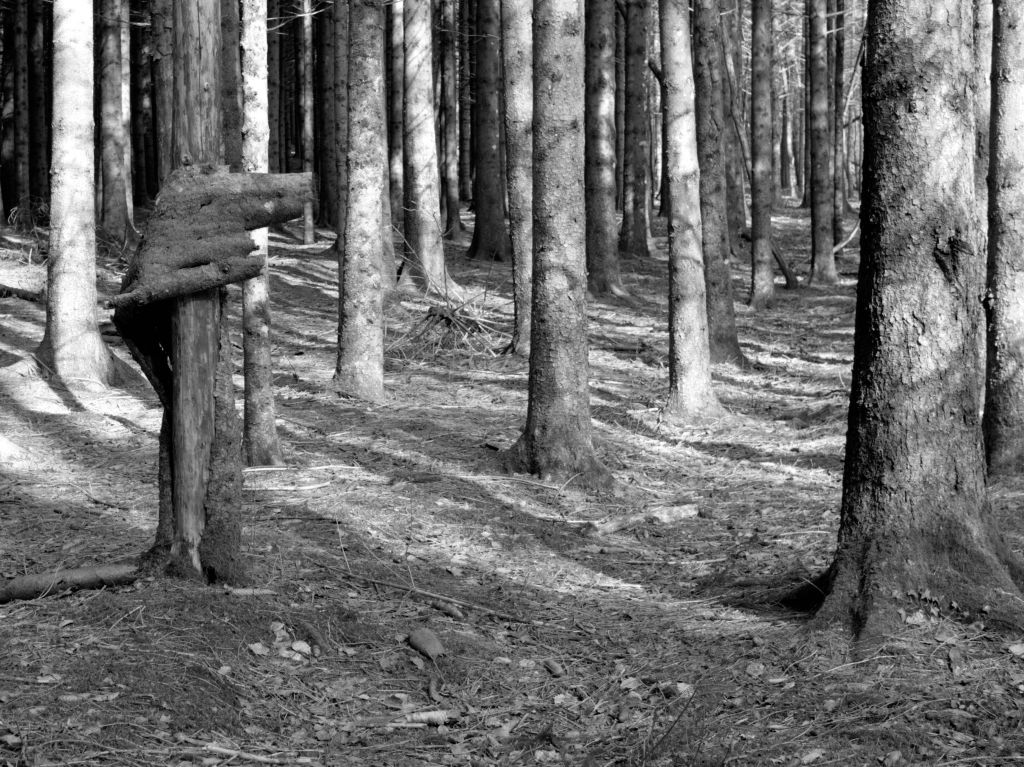 Une forêt en noir et blanc