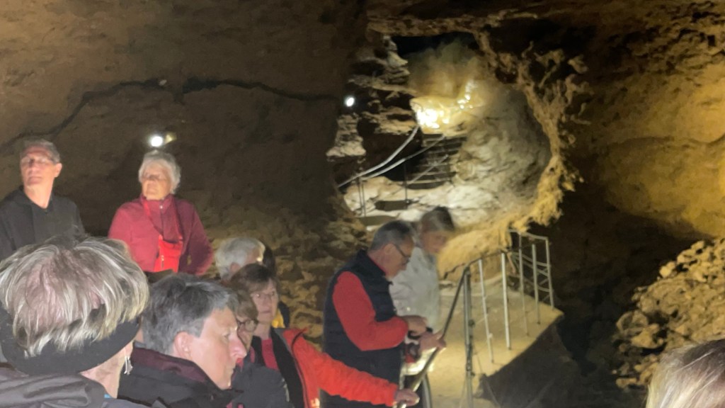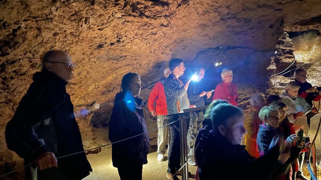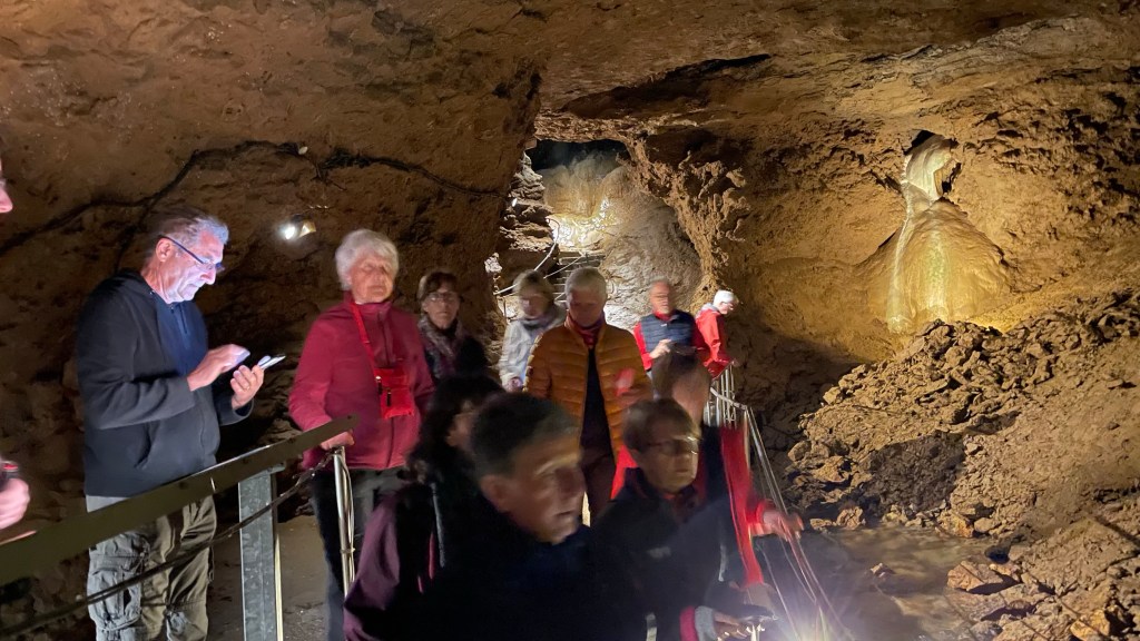 Accueil café à Crémieu, marche, picnic, visite des grottes de la Balme offerte par La Randonnée Crémolane, puis retour sur Crémieu pour le verre de l’amitié à la brasserie « le Couvent des Ursulines »