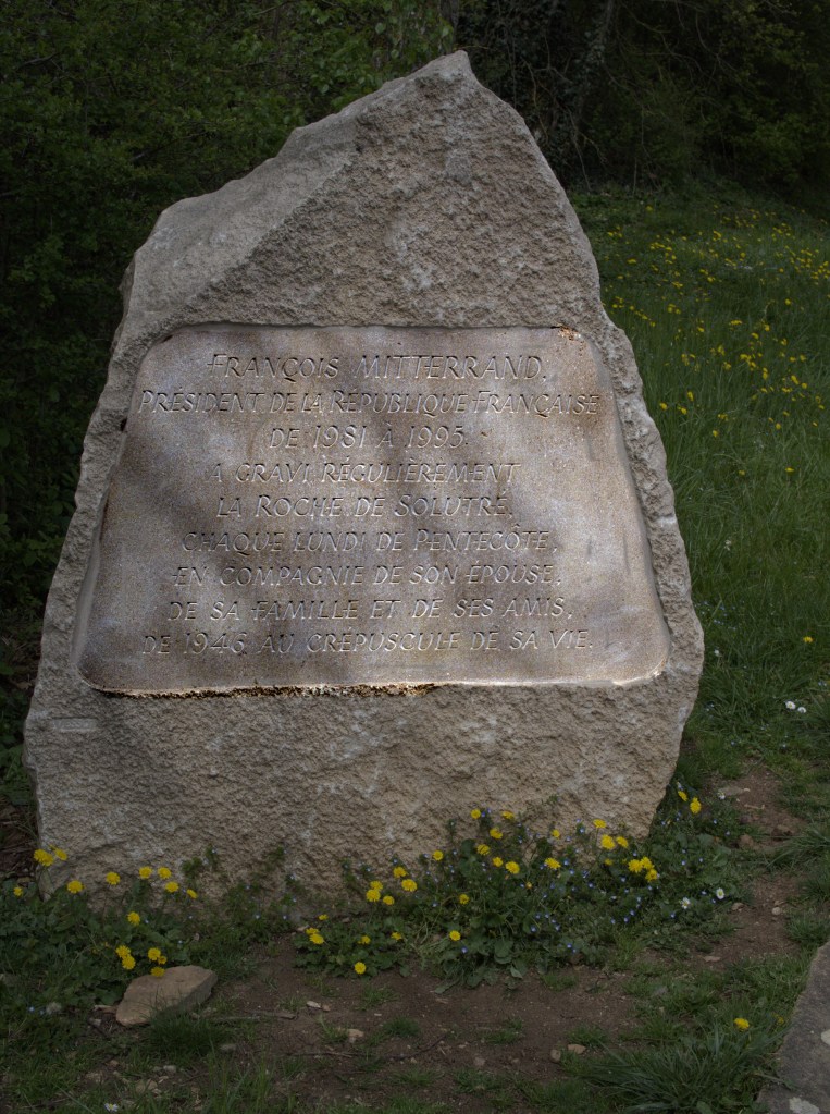 Sur les traces de François Mitterand à Solutré (Saône et Loire – 71)… Ce petit sommet mythique et aérien qui culmine à 495 mètres nous invite à gravir par une boucle d’environ 18 kilomètres les deux autres roches de cette partie du Mâconnais : Vergisson et Pouilly.