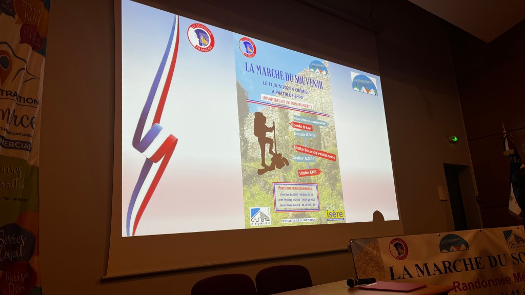 Le 15 mai à l’auditorium de Crémieu, s’est tenue la soirée de présentation de LA MARCHE DU SOUVENIR du 11 juin prochain, en présence des organisateurs, des partenaires et des bénévoles.