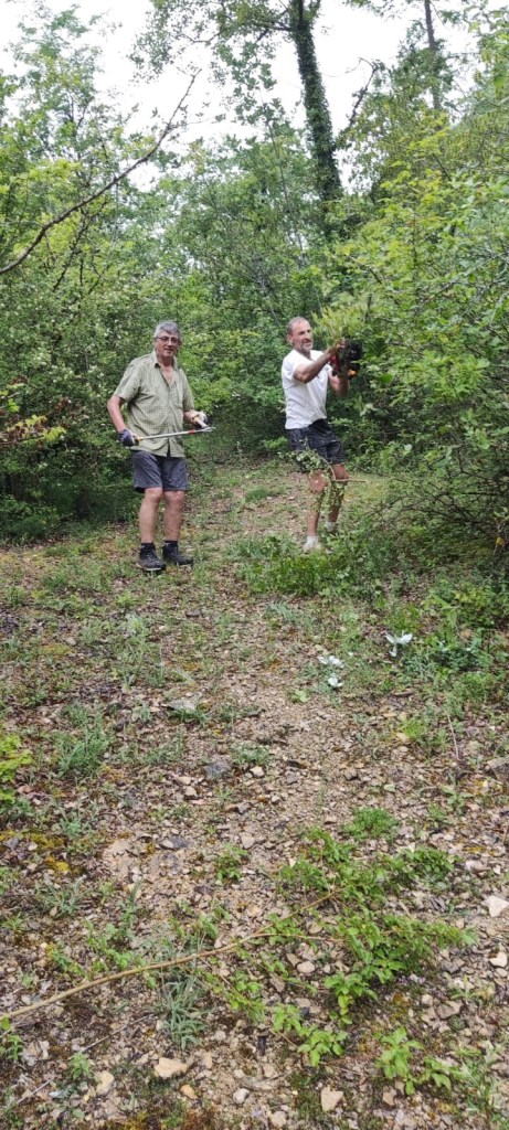 Deux braves bénévoles qui s’activent pour vous faire de beaux chemins bien propres et nets, enlever quelques branches, des ronces, etc. pour la marche du souvenir !