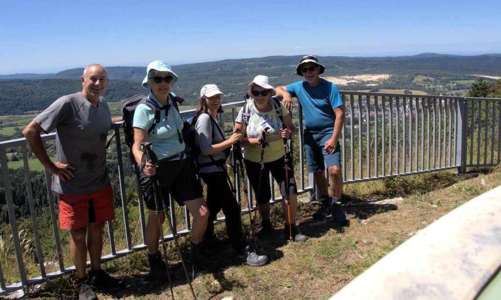La randonnée se poursuit au Belvédère du Curnillon (photo de groupe), où nous surplombons HAUTEVILLE (et surtout, nous cassons la croûte).