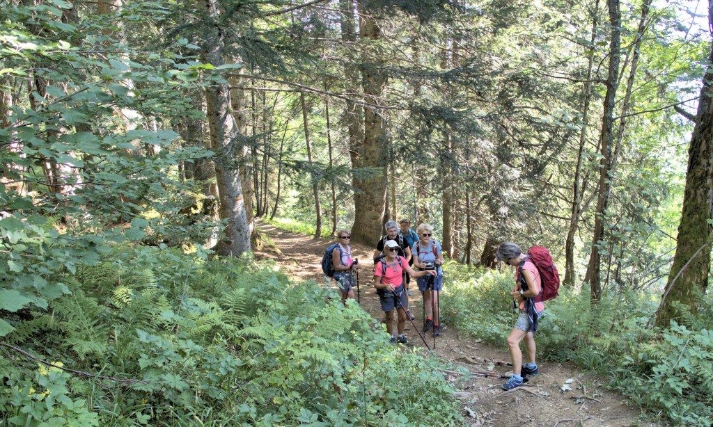 Nous prenons maintenant le chemin de la descente, plaisante en passant par les Chalets, l’Oratoire, puis par un sentier parfois abrupt, mais sans danger. Une marche de 10,5 km, en 5 heures environ qui était proposée par JP VILLARD.