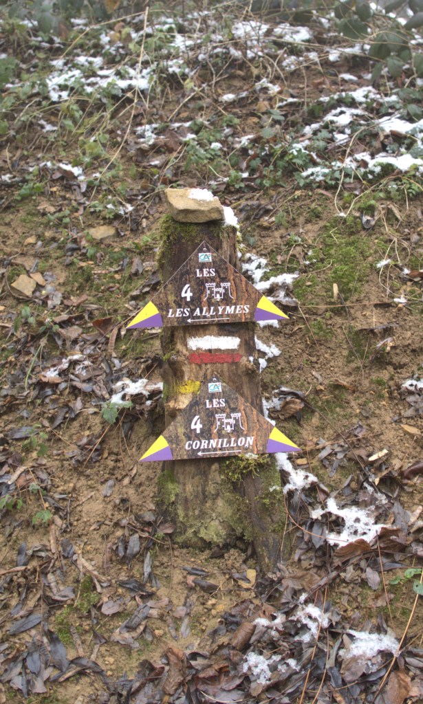 Direction ensuite Les Allymes pour le château qui domine la plaine de l’Ain (premier permis de construire accordé en 1310, construction par les entreprises Peronnet et Guillemet d’Hières). Reprise de la randonnée en direction d’Ambérieu.