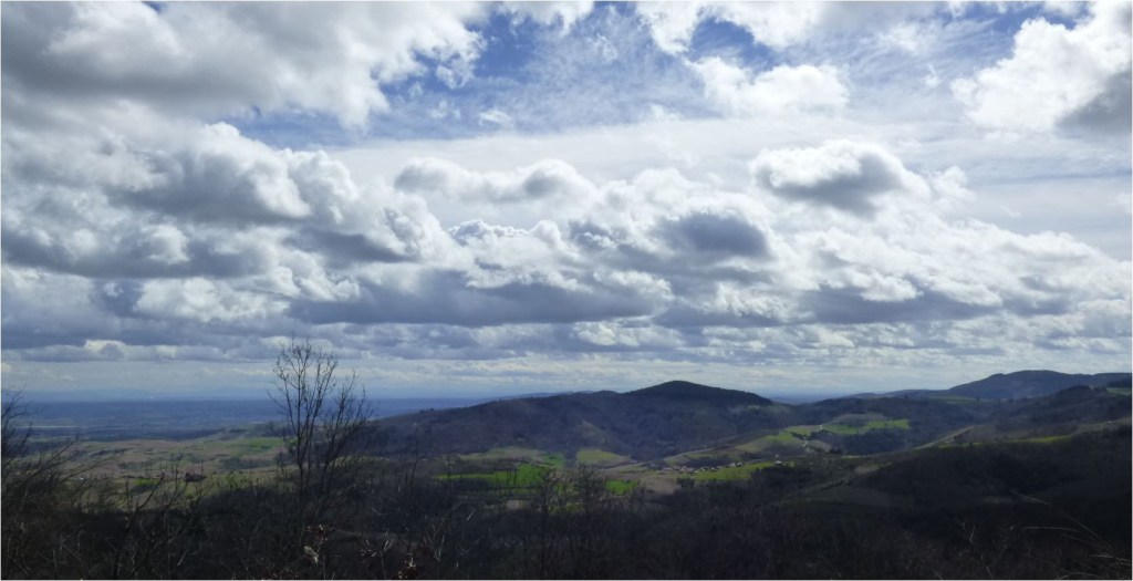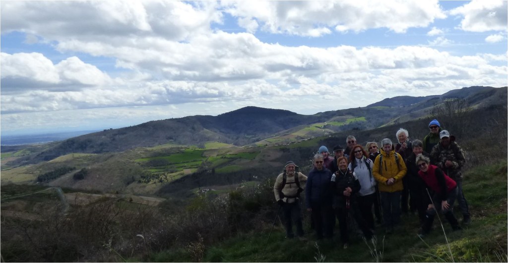Avec toujours autant de brio, notre ami Daniel a conduit cette balade (env. 16 km / 650 m D) en Beaujolais, au départ du charmant village nommé Le Perréon, par monts et par vaux, sous un ciel plein de mouvement, où le soleil jouait volontiers avec les nuages, pour finalement s’imposer pour notre plus grand plaisir.
