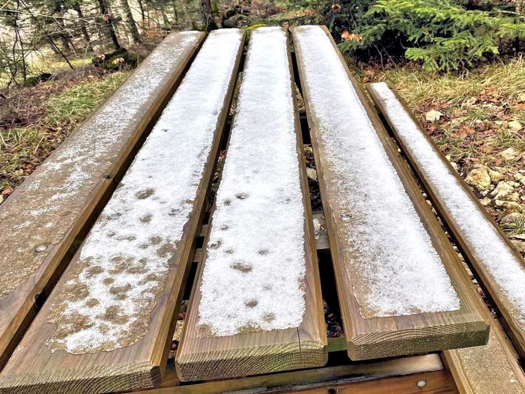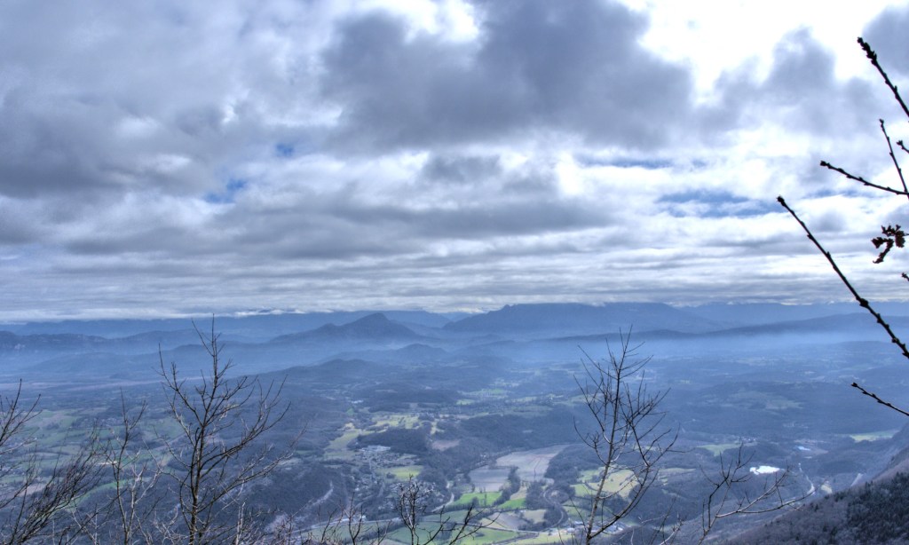 Là c’est une pause casse-croûte, un petit repos, une vue sur les montagnes au loin : La Dent du Chat entre autres, tout ça avec une météo parfaite.
