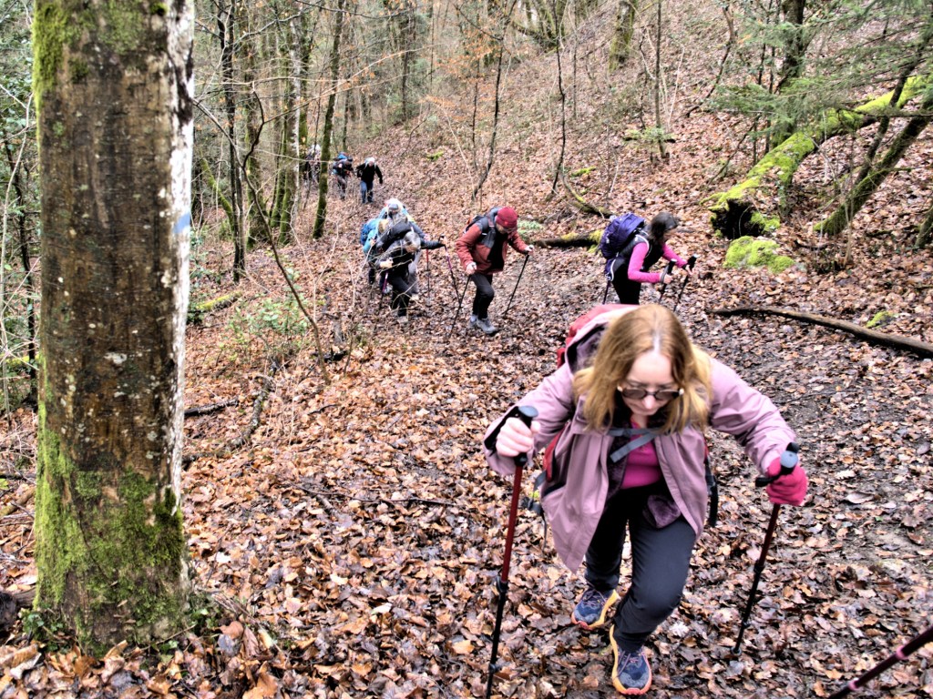 Puis c’est la descente vers le hameau de Ponthieu, puis direction vers la stèle dédiée aux combattants de la dernière guerre, avant de reprendre notre cheminement en forêt.