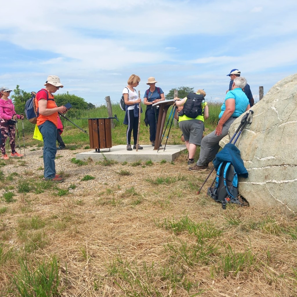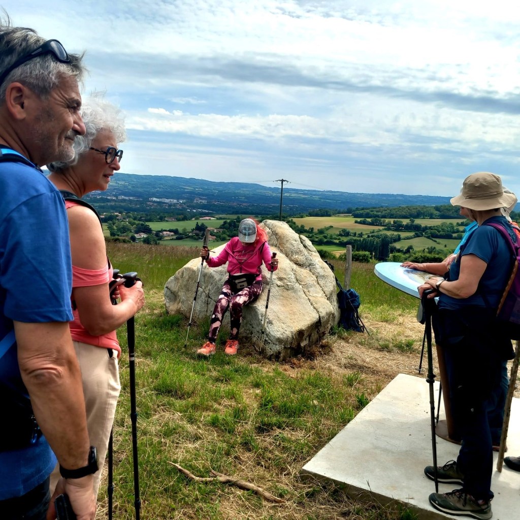 Une randonnée de 7 km et 190 m de dénivelé avec Elias, nouveau guide qui nous emmène sur des beaux chemins et … un jardin extraordinaire 🎶🎼 !