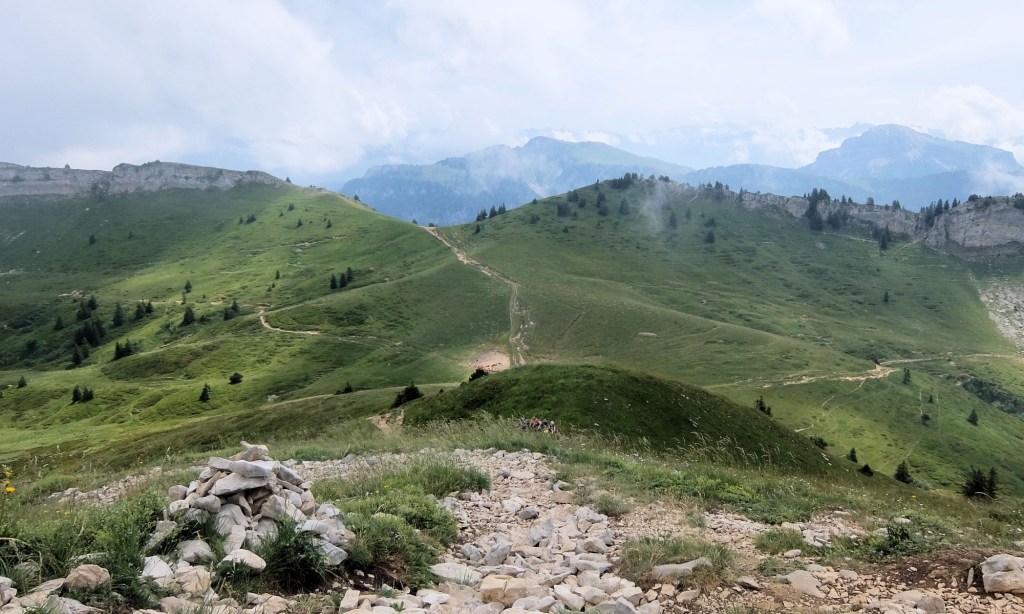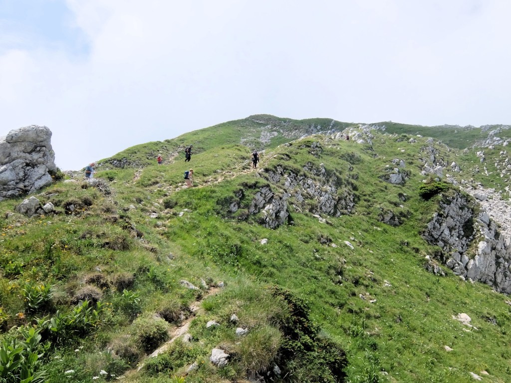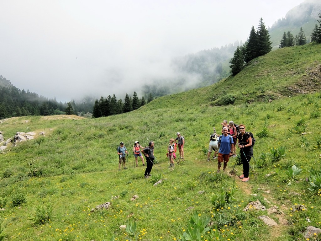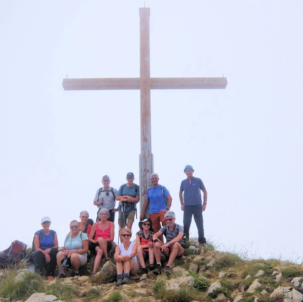 Un bien bel effort physique de tous pour arriver à ce sommet. Par un parcours varié qui démarre « doucement » pour s’échauffer, mais qui nous fait vite passer par des sentiers plus raides et plus acrobatiques avant d’arriver au « Cul de lampe ». Ensuite ce sont des alpages (et leurs vaches) avant d’aborder la dernière montée jusqu’au sommet et sa croix.