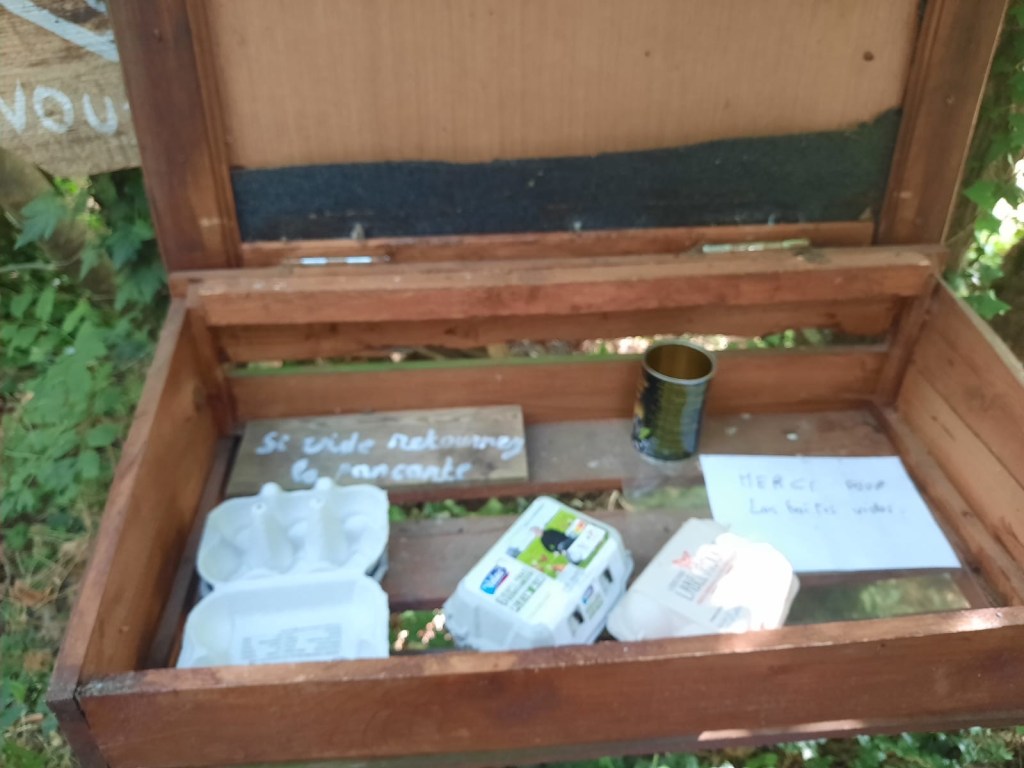 OOOOUUUUIIIII ! les randonneurs peuvent se servir… Bien sûr, nous sommes honnêtes et mettons bien une pièce en échange.