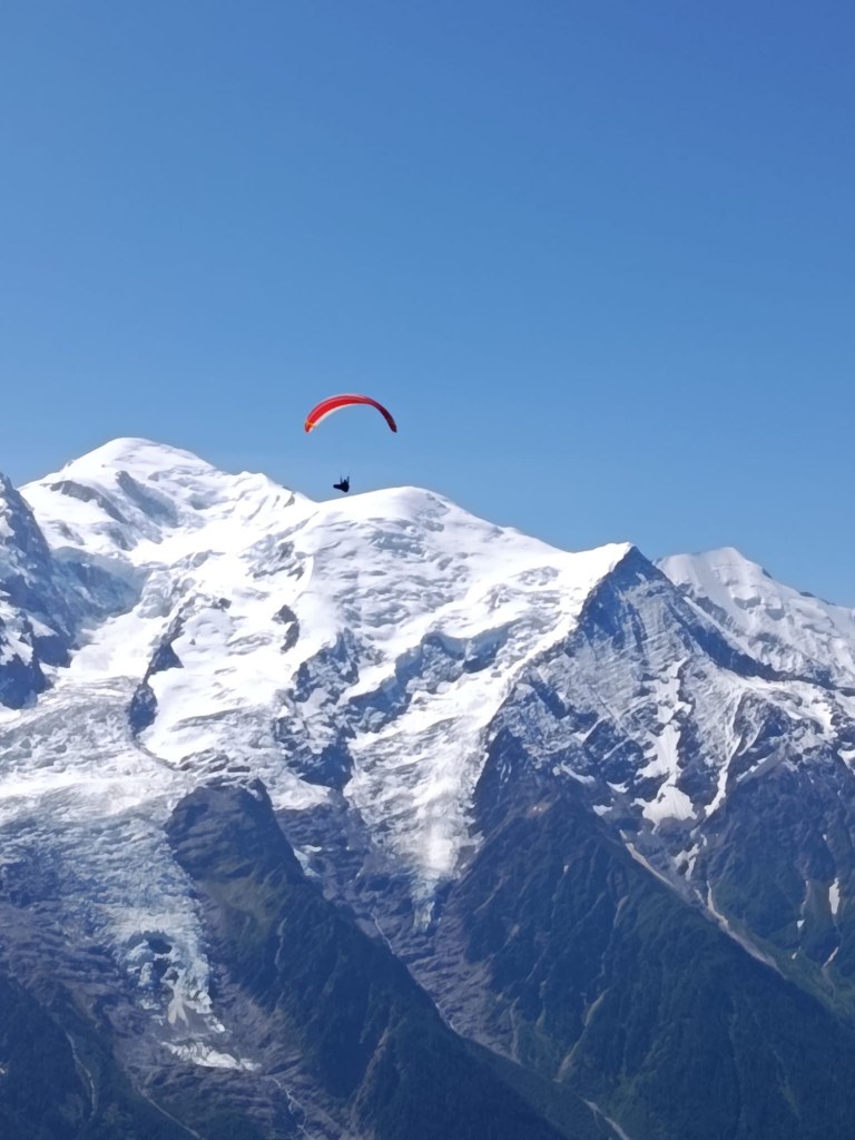 Le spectacle est à la hauteur de l’effort : une vue époustouflante sur le massif du Mont-Blanc, des lacs de montagne aux eaux sombres et limpides, des parapentes, et même la rencontre avec des bouquetins paisibles, peu farouches face aux randonneurs.