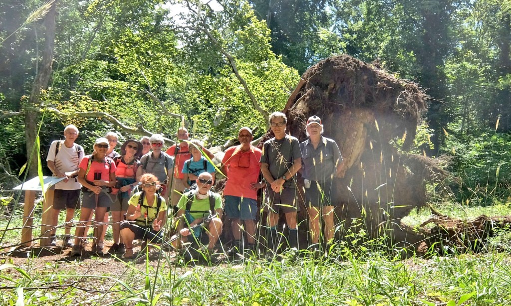 Peu après le Crêt de Pont (1059m), c’est un arbre qui a retenu notre attention. Un chêne écroulé et qui a été volontairement laissé sur place pour permettre de suivre l’évolution de sa dépouille.