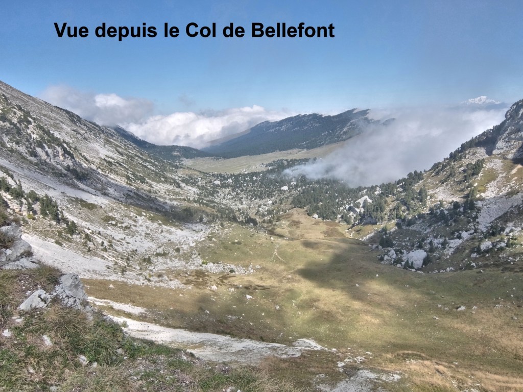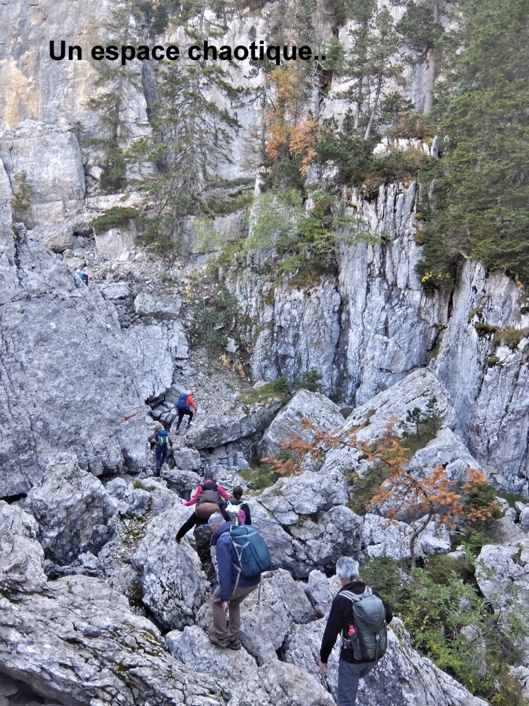 Départ du hameau de Perquelin à Saint Pierre de Chartreuse, direction le Col de Bellefont par le chaos, puis le pas de Chamechaude, direction la cheminée du Paradis qui est finalement un passage trop dangereux et nous oblige à faire demi tour. Nous descendons finalement par un chemin plus classique proche du GR 9.