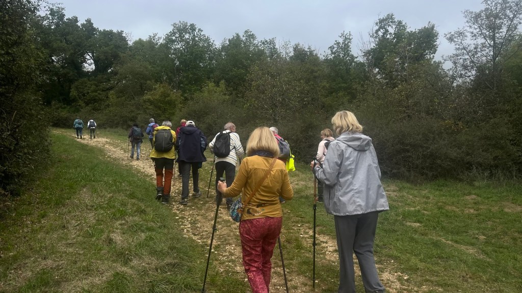 Le pas tranquille, nous avons serpenté entre les hameaux, suivant les courbes d’un paysage encore vert, déjà piqué des teintes dorées de l’automne. Nous avons été brumisés, mais le rire du groupe couvrait tout.