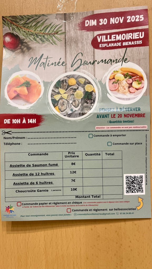 Matinée gourmande dimanche 30 novembre organisée par « Créons du lien à Villemoirieu »