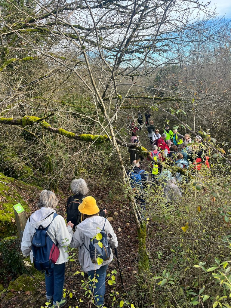Le terrain, parfois moussu, parfois pierreux lieu d’une ancienne carrière -que l’on suppose de Lauzes- ?, offrait une diversité appréciée des randonneurs, tandis que le chemin, un peu sauvage par endroits, ajoutait une touche d’aventure à la balade.