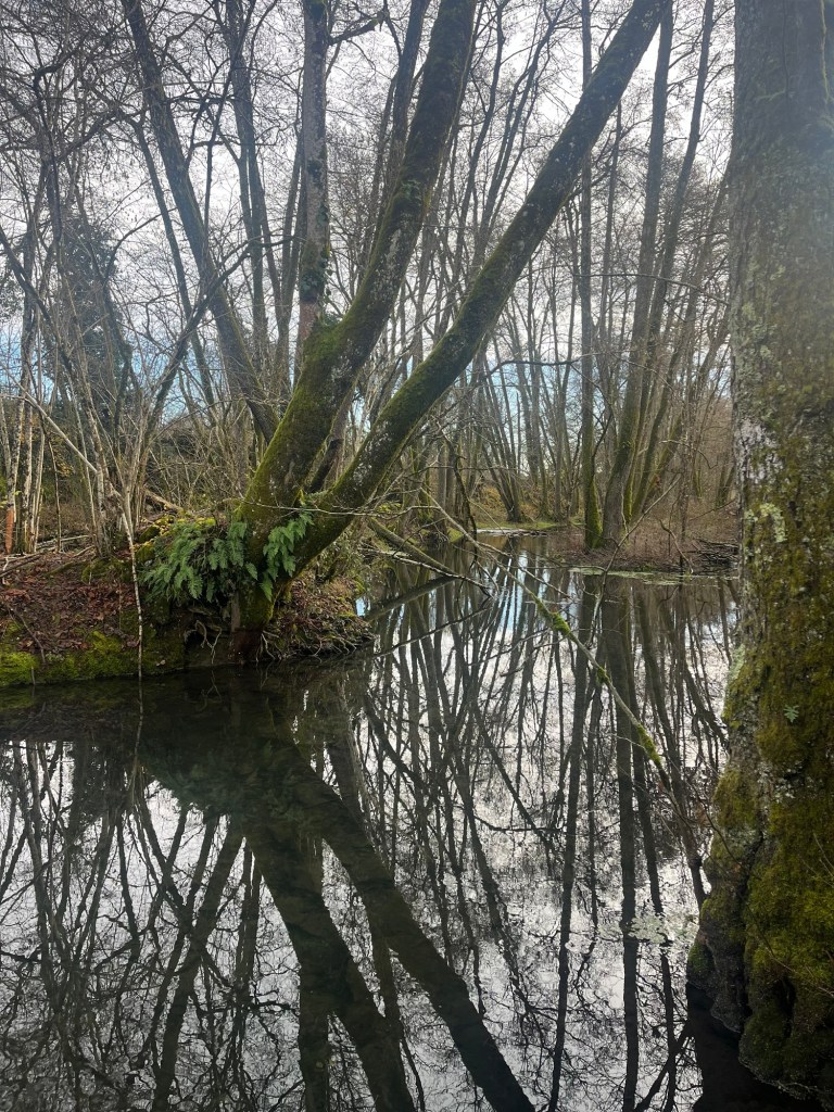Dès les premiers pas, l’ambiance chaleureuse du groupe s’est fait sentir : sourires, échanges, plaisir de se retrouver pour partager un moment nature. Le parcours nous a rapidement conduits au cœur d’un environnement varié, entre sous-bois, prairies et zones humides typiques du plateau de l’Isle-Crémieu.