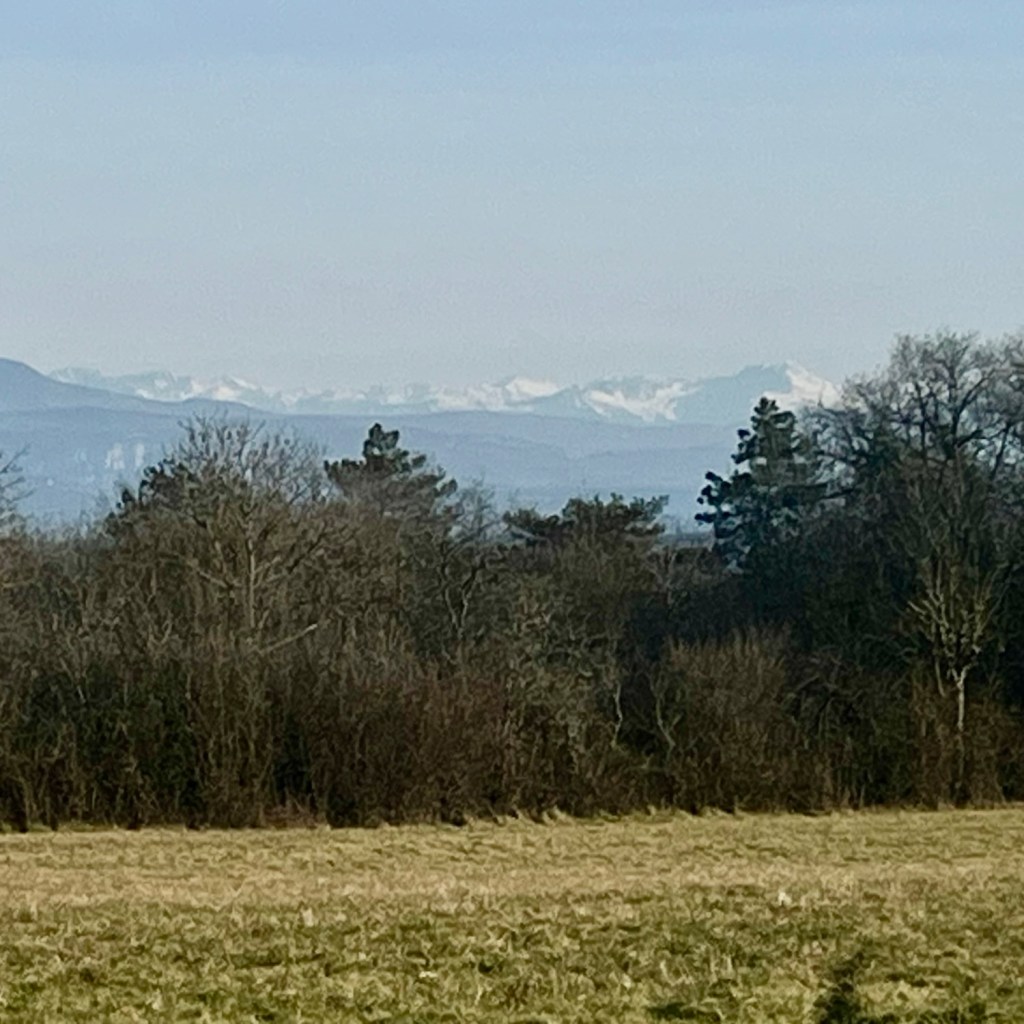 Nous avons réalisé une boucle agréable, alternant chemins et passages ouverts sur de beaux panoramas dont la chaîne des Alpes et la Dent du Chat.