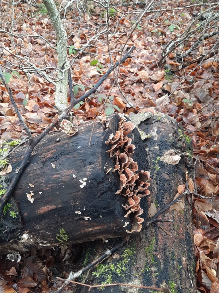 Si c’est lisse c’est un Stereum, si ce sont des tubes c’est un Trametes versicolor… nom latin évidemment.