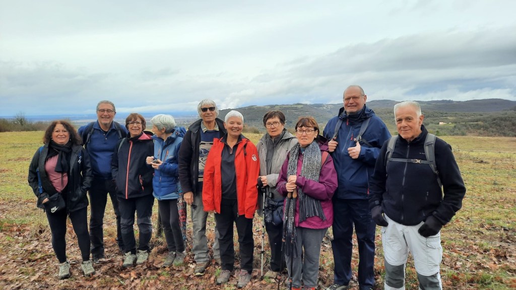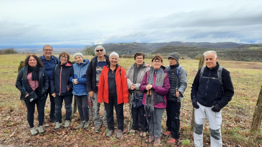 “Finalement pas de pluie pour cet après-midi rando avant les bugnes… bizarre nous n’étions pas 65” nous dit sur un ton humoristique Yvette Baudin qui a assuré au pied levé cette sortie pour 11 personnes au total et 5,8km / 135m de dénivelé.