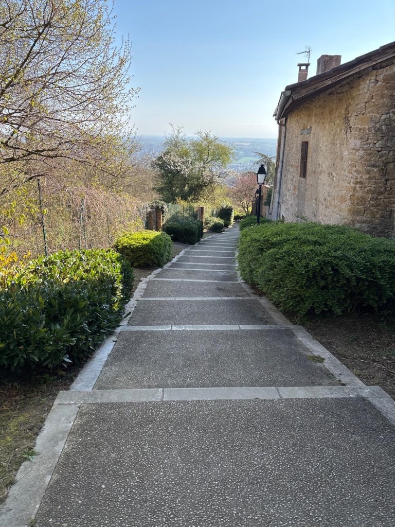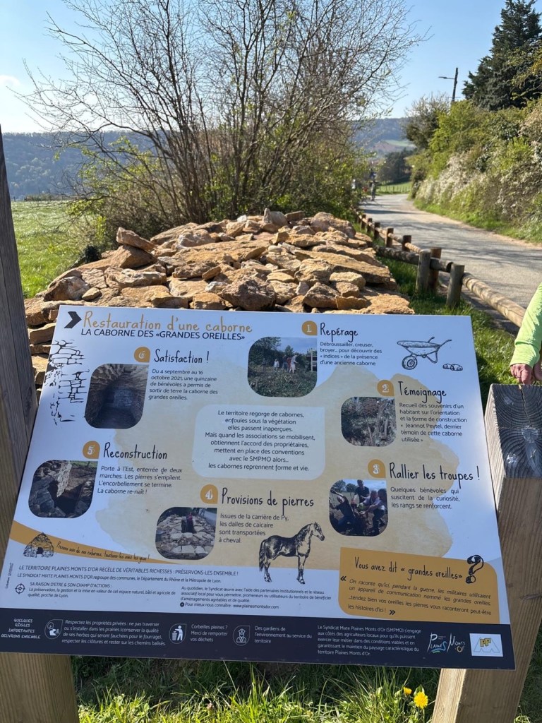 17 km et 570 m dénivelé, sur le chemin des cabornes (cabanes au bord des vignes et des champs), vue panoramique sur Lyon, la Saône, Fourvière et les tours de La Part Dieu