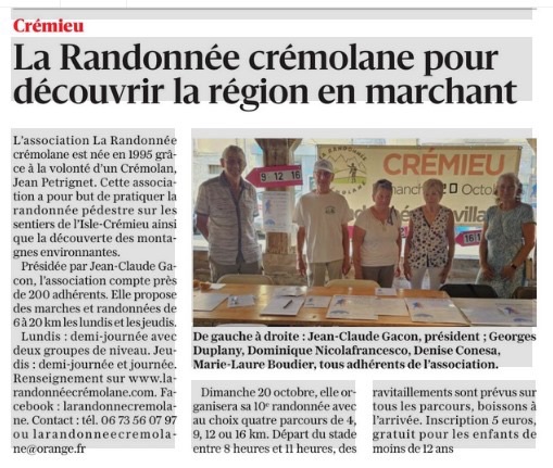 - Randonnée de village 15 10 2017 (Le Dauphiné 18 10 2017, Communiqué presse)